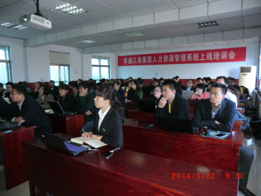 2014年3月22日上午9:00,華盛江泉集團人力資源管理系統薪酬管理模塊培訓會在人社中心三樓舉行,參加培訓會的有集團薪資專員、單位人事專員、用友HR項目組成員、江泉HR項目組成員共70余人。江泉方項目組代表申路平主持了本次培訓。